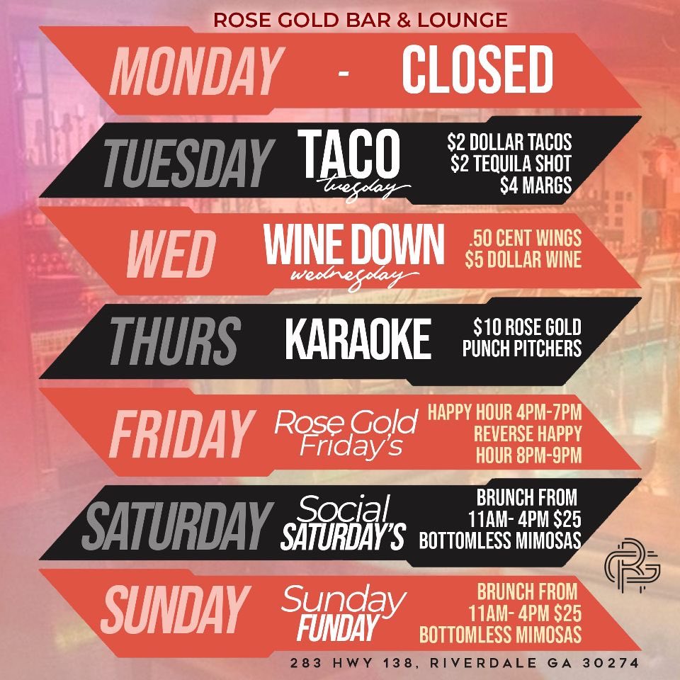 Rose Gold Bar Lounge Restaurant 283 Ga 138 Ste A Riverdale Ga 30274 Usa