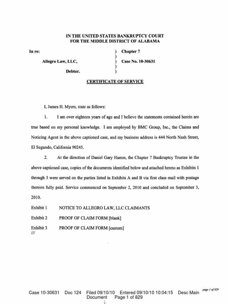Certificate Of Service Bmc Group
