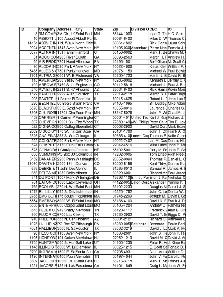 Id Company Name Address City State Zip Division Ofceo Io