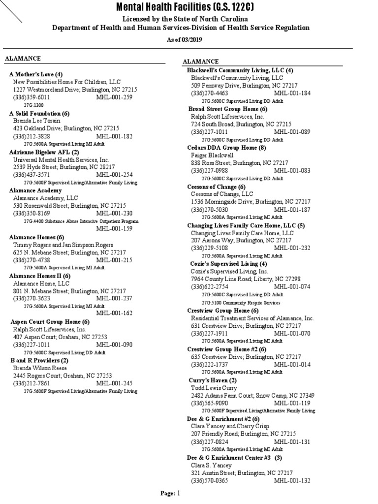 Master List Of Mh Facilities December 2019 Group Home Health Care