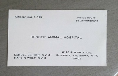 Bender Animal Hospital Riverdale The Bronx New York City Business Card Vintage Ebay