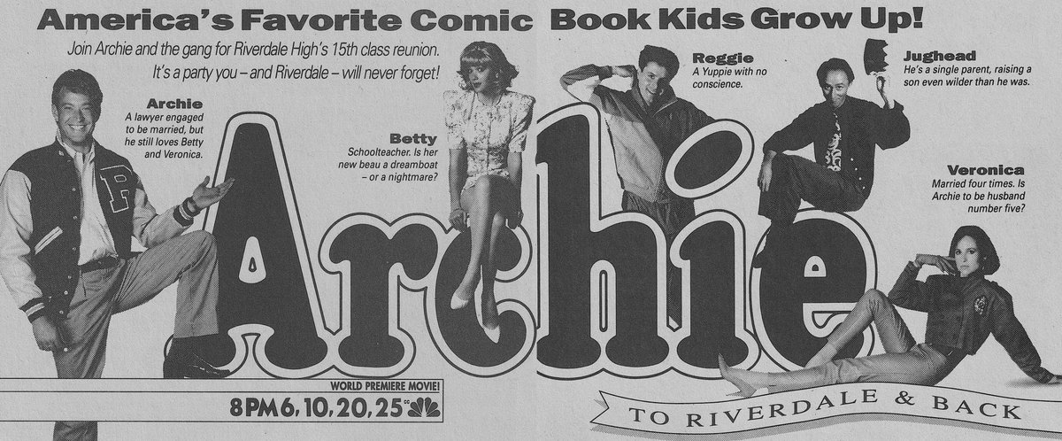 The classic comic book characters created by john l. Directed by dick lowry. To riverdale and back again is a 1990 american live action made for television comedy film based on comic book characters published by archie comics it was produced by dic entertainment and premiered on nbc sunday night at the movies on may 6 1990. They are now adults.