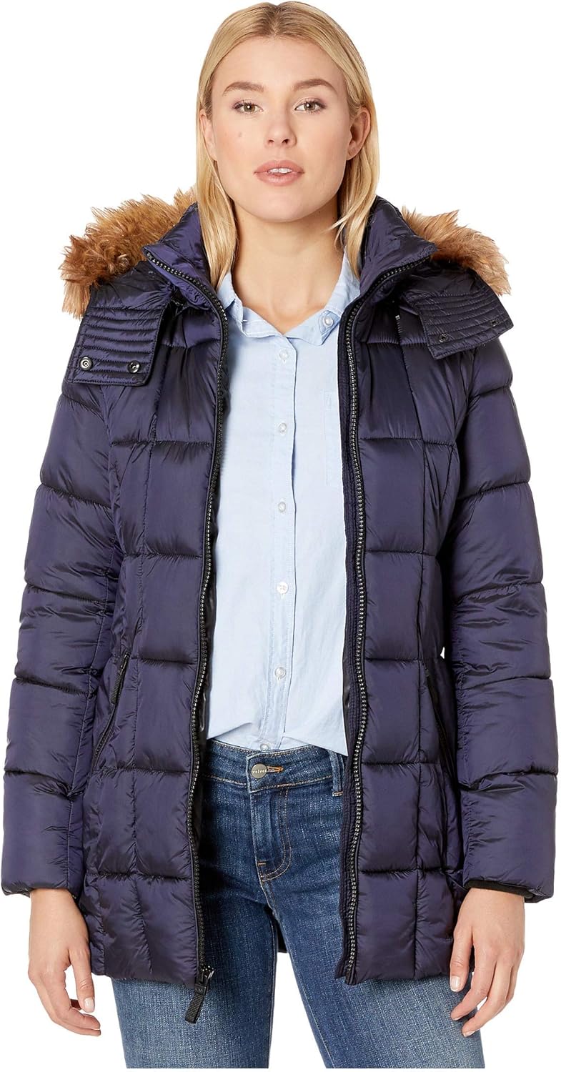 Marc New York Riverdale Faux Fur Trim Hooded Puffer Coat In Navy Size L H1512 Ebay