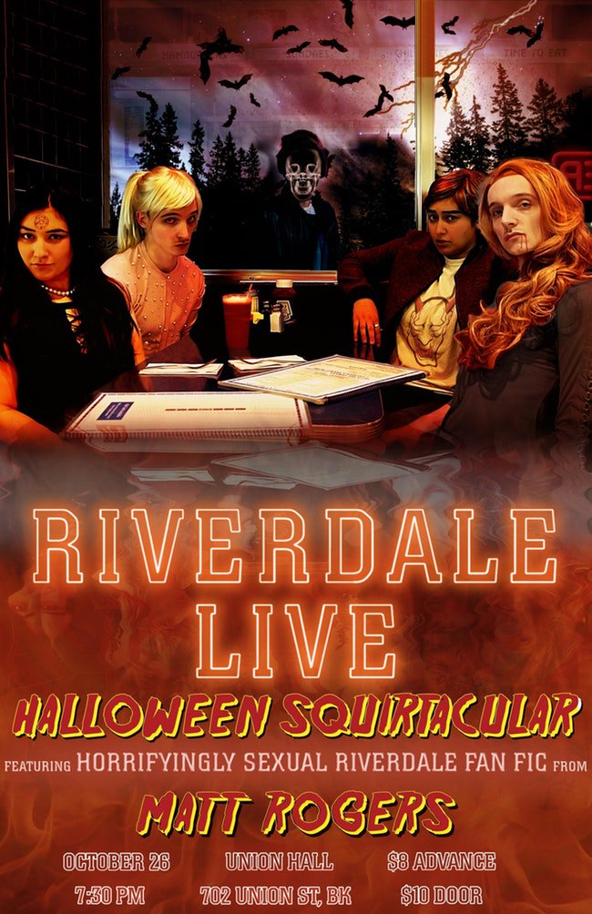 Union Hall On Twitter Fri 10 26 Riverdale Live Halloween Squirtacular W Sesantos Johntrowbridge And Horrifyingly Sexual Riverdale Fan Fiction By Mattrogerstho Tickets Https T Co Hfxppe9vjw Https T Co Ucotzlaxob