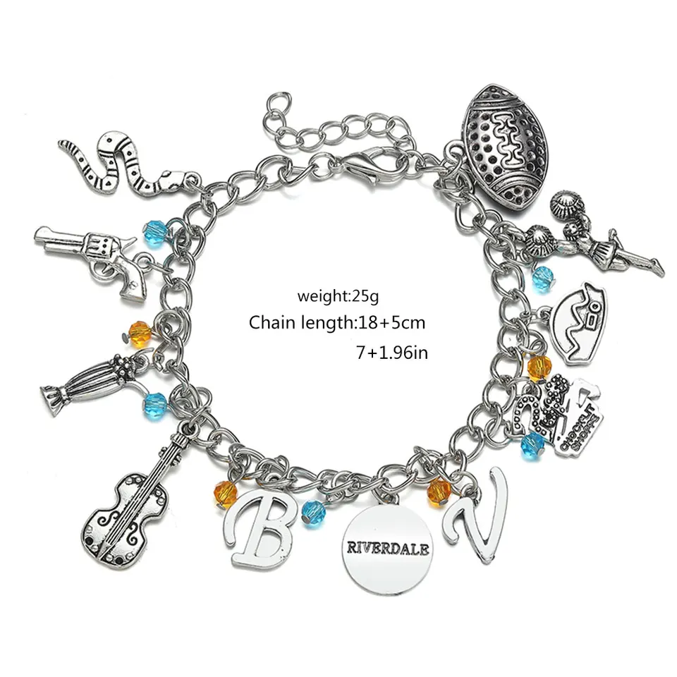 Zrm Riverdale Tv Series Logo Charm Bracelet Guitar Metal Pendant Bracelets Bangles For Men Women Friend Gifts Jewelry Chain Link Bracelets Aliexpress
