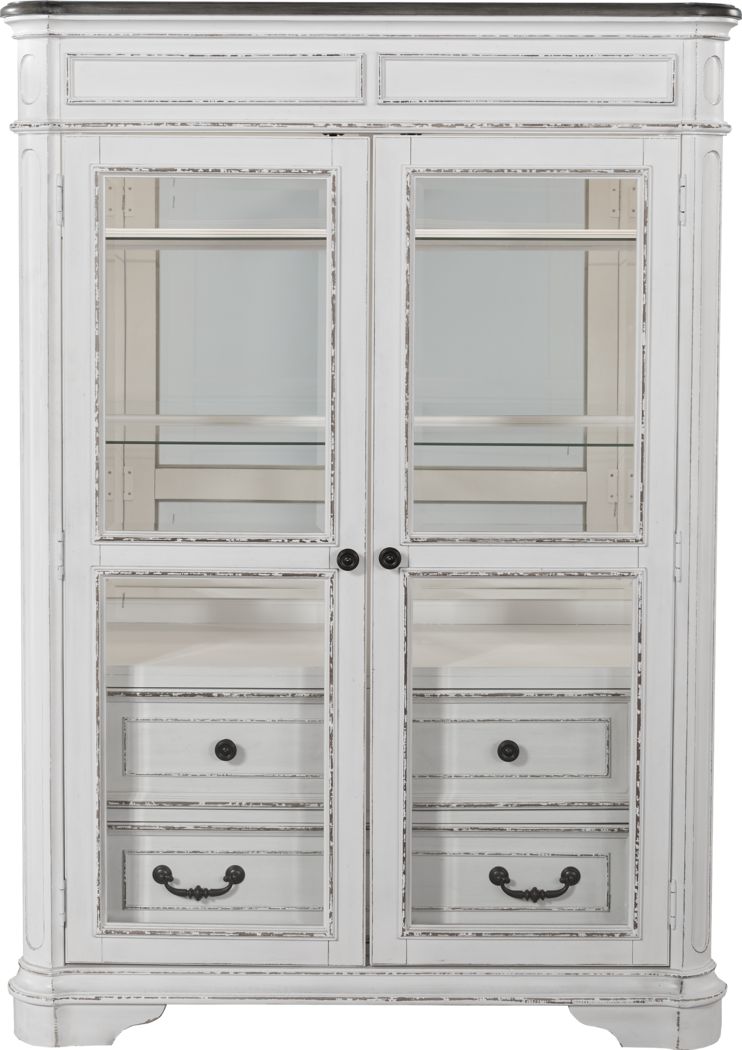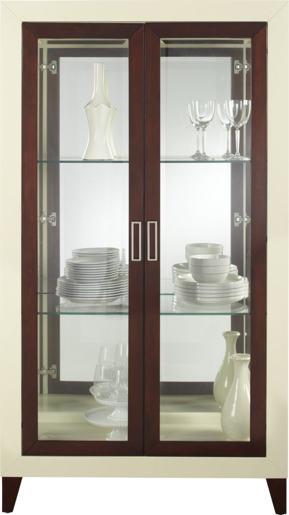 Howard miller brattain curio cabinet 547 165 windsor cherry finish home decor four glass shelves five level display case with locking slide door halogen light 1 086 76 1 086. China cabinets and curios display your dinnerware and other cherished items inside a china cabinet or curio. 0 out of 5 stars based on 0 reviews current price 625 66 625. This versatile dining room piece includes wine storage for up to eight bottles open shelves for serving pieces and three drawers with silver toned knobs.
