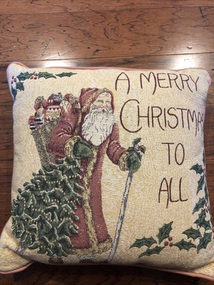 Christmas Pillow Tapestry Victorian Pink Santa Throw Pillow Riverdale Ebay