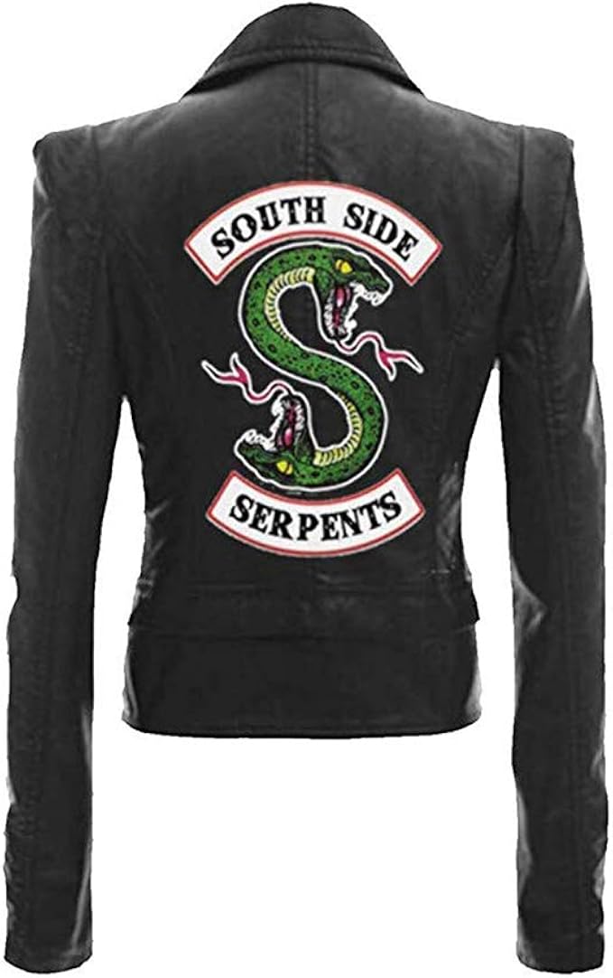 Amazon Com Riverdale Southside Serpents Biker Gang Black Faux Leather Jacket Zip Up Archie Andrews Betty Cooper Costume For Men Women Clothing