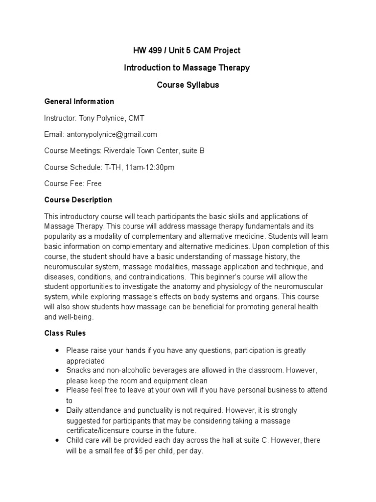 Apolynice Hw 499 Unit 5 Assignment Massage Alternative Medicine