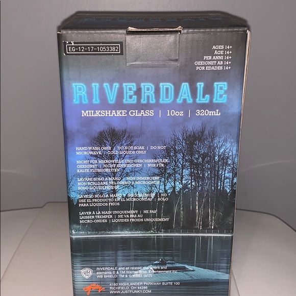 Grab two straws and curl up in a booth with your brooding beau to share a milkshake from this glass from riverdale. The prop replica milkshake glass features the pop s chock lit shoppe logo on front. Enjoy a soda or sundae in it too only available at hot topic glass10 oz. 5 out of 5 stars 46 8 59.