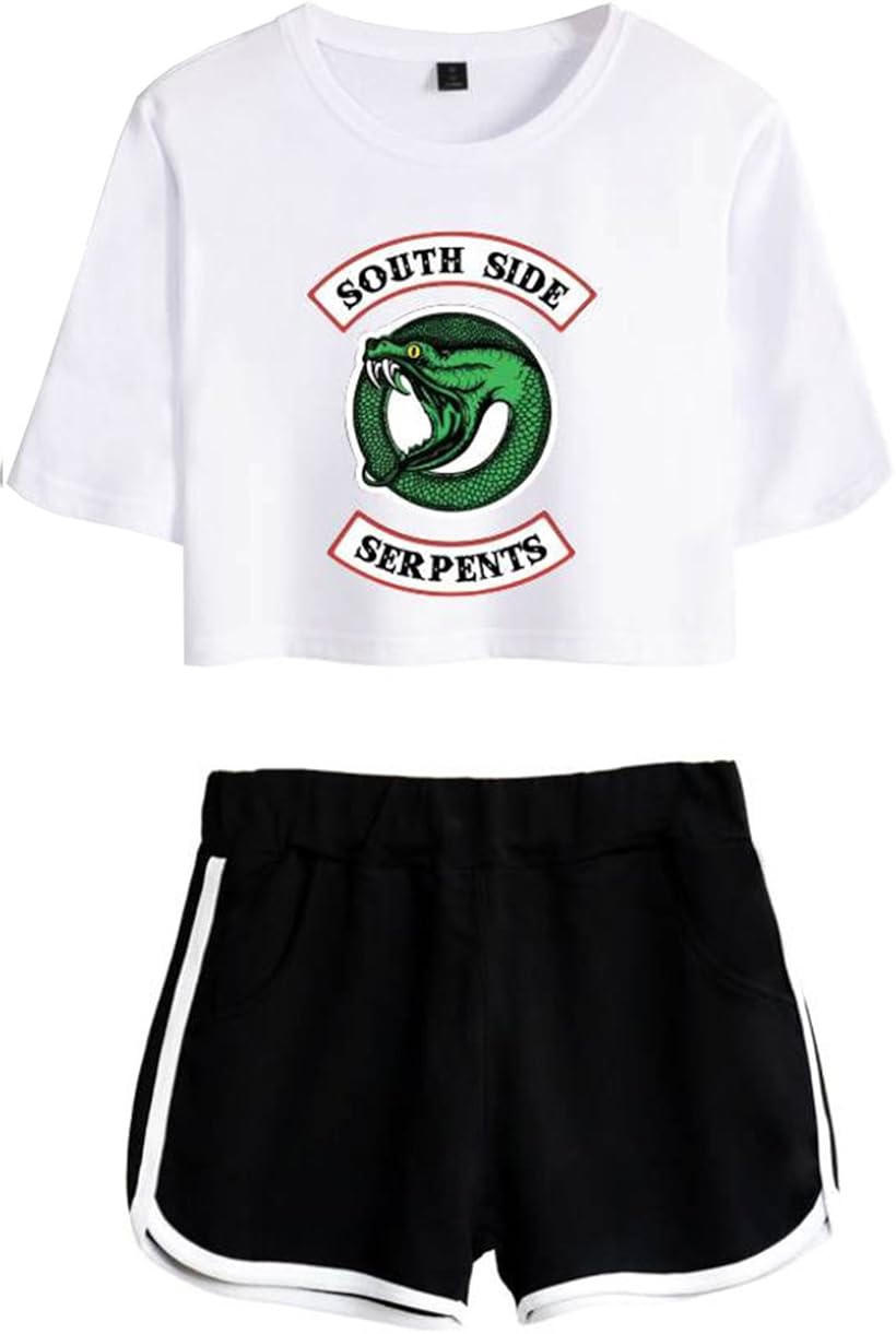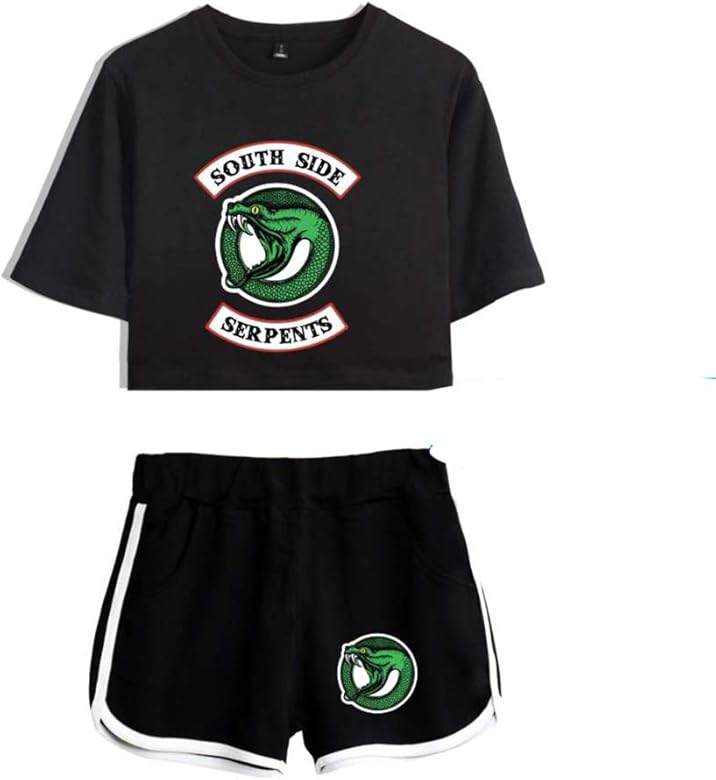 Eudolah Womens Riverdale Crop Top T Shirts And Shorts Suit Southside Serpents Printed Clothes Set Suit Sets Women